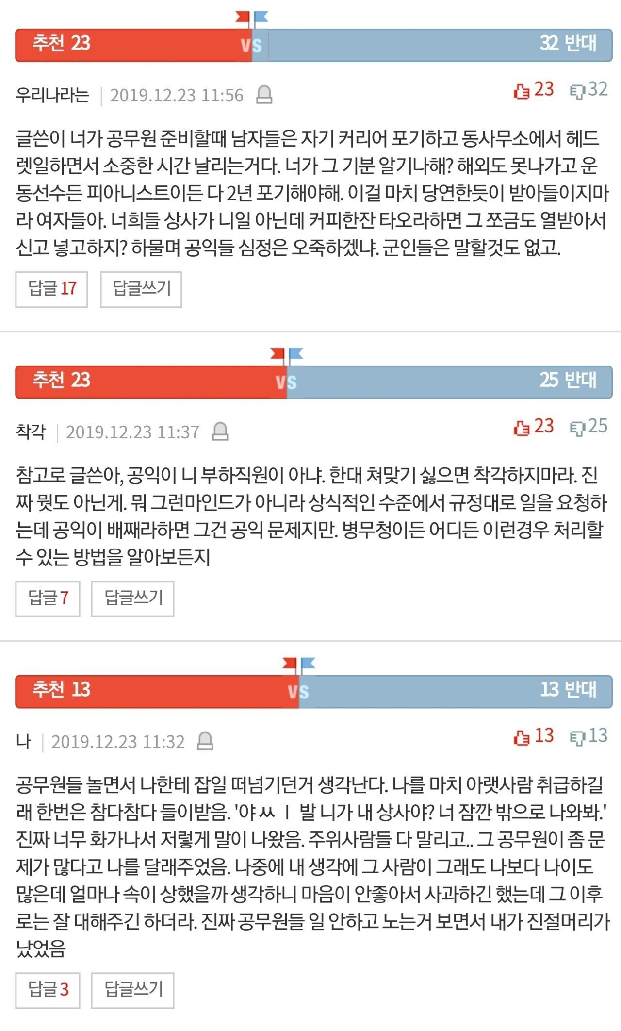 네이트 판, 꽃쩡, “공익근무요원때문에 힘들어요(개빡침)”, (2019.12.19)