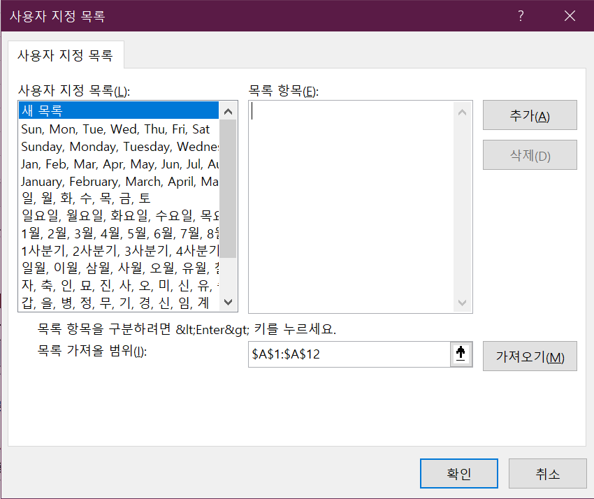 사용자 지정 목록에 1월부터 12월까지를 2번 반복한다.