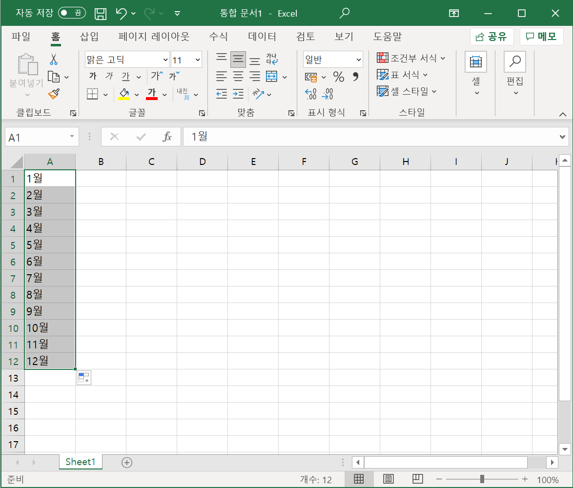 엑셀 2013에는 잘 알려진 오류가 하나 있다. 바로 1월 2월... 을 자동채우기 하면 그 뒤로 3月4ㅇ月... 이렇게 한자로 채워지는 오류.