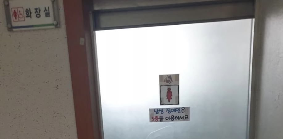 그리고 직접 동사무소 가본 사람이 인증한 것을 보면, 해당 동사무소의 화장실의 구조가 좀 특이했다. 여자 화장실은 1층에 있지만, 남성 장애인은 3층을 이용해야 했던 것이다!
